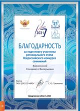Областной фестиваль социально-значимых творческий проектов «Профессионалы Урала», индивидуальный конкурс «Профессионал» , 2021 год |