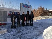 Юнармейцы ВПК "Исетская застава" Покровской школы Каменского муниципального округа совместно с руководителем ВПК Любовью Викторовной Стуковой после прошедшего снегопада организовали уборку обелиска воинам-землякам, погибшим в годы Великой Отечественной войны и в ходе СВО. Ребята расчистили дорожку к обелиску, убирали снег на площадке, очистили мемориальную плиту, поправили цветы.